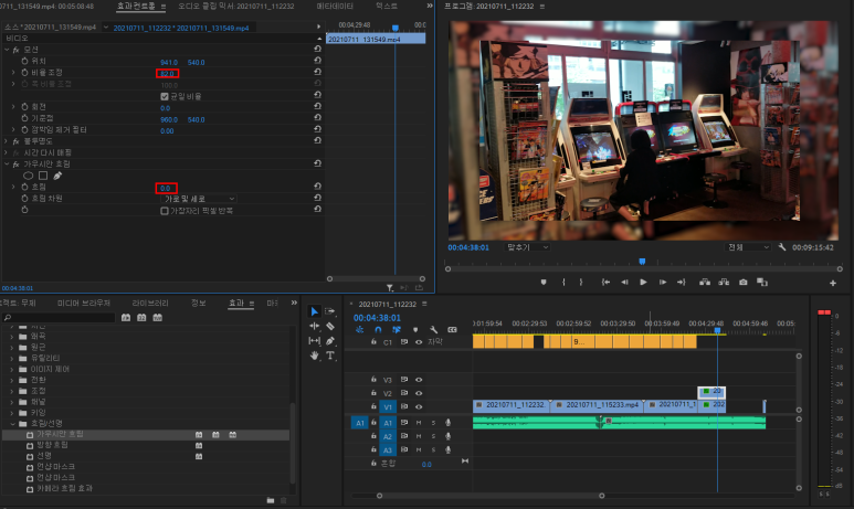 프리미어프로기초 블러, 가우시안흐림 적용방법입니다